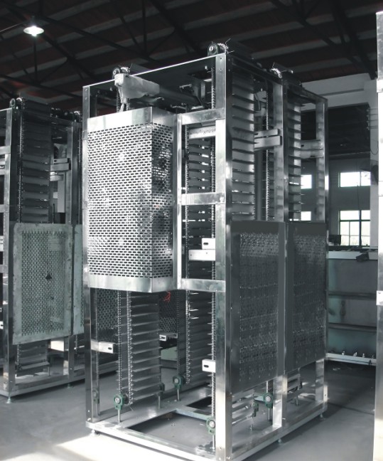 冷却升降塔是在车间面积有限的情况下作为产品冷却的辅助设备或在烤盘需要提升输送时提升设备。