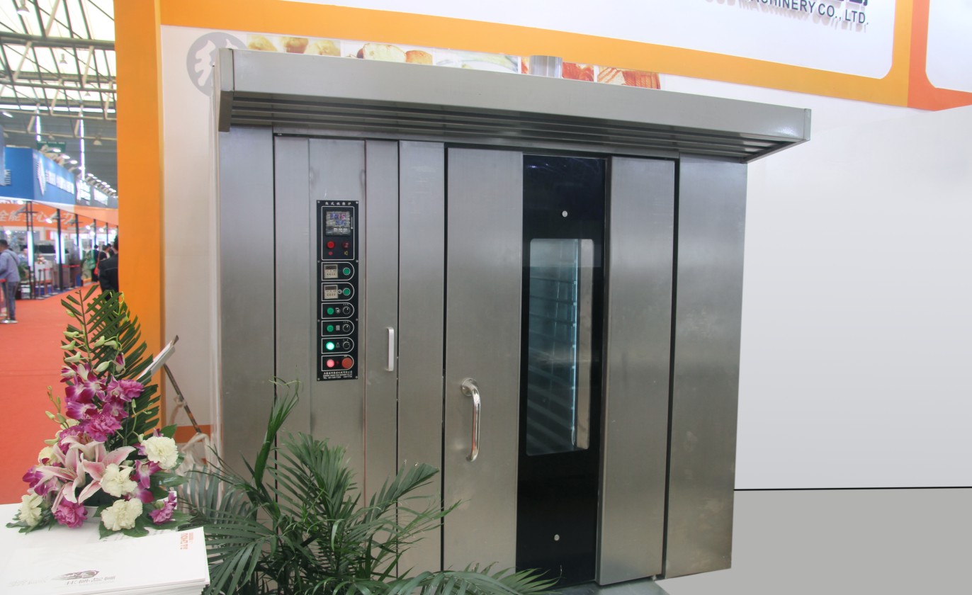 热风旋转烤炉是烘焙类产品的主要烘烤设备,我公司生产的热风旋转烤炉按能源分:燃气(天然气、液化气)、燃油(柴油)、电,烤车固定方式分:转盘型与挂钩型,烤炉容量分为32盘及16盘(即烤车一层放置一个烤盘或二个烤盘)。我公司生产的热风旋转烤炉质量稳定、热量均衡、保温性好,有蒸汽喷射装置,风量调节装置,可拆卸。烘烤出的产品色泽美观并且节能。